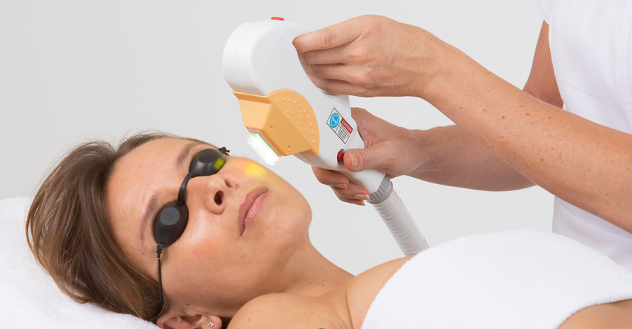 - Notre praticienne balaie le rayonnement lumineux sur les zones de peau à traiter.